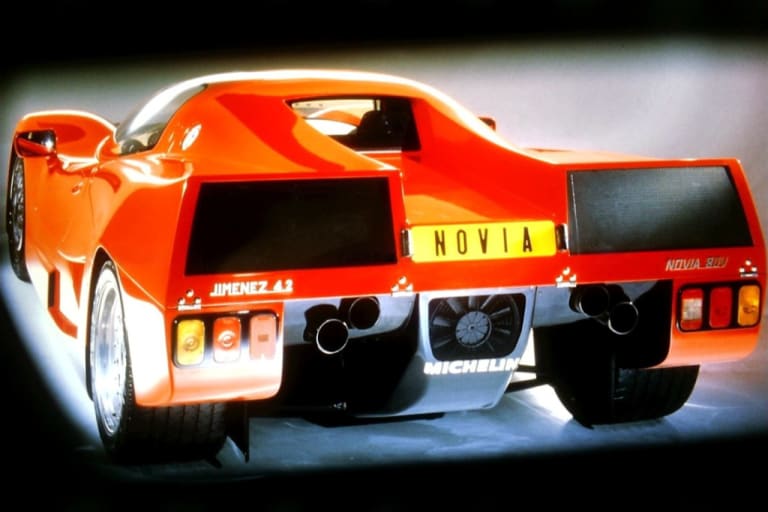 Ramon Jimenez était un passionné, sans aucun soutien financier ni industriel, mais il s’était mis en tête de construire « sa » supercar, rapide comme un avion : ne cherchez pas plus loin le nom de la voiture, Novia était l’anagrame d’avion justement, tout en mettant l’accent sur l’aspect novateur du projet. Car bien avant le lancement de la Bugatti Veyron, la Jimenez Novia proposait en position centrale un drôle de moteur appelé W16.