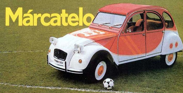 La voiture du Mundial ! Basée sur la 2CV 6 CT, le modèle de base de la 2CV en Espagne, similaire à la 2CV Spécial en France. Elle en reprend les phares triangulaires. Carrosserie blanc Meije avec parements autocollants rouges et oranges, aux couleurs de l’équipe espagnole de football. Le tissu des sièges est orange avec des lignes noires.