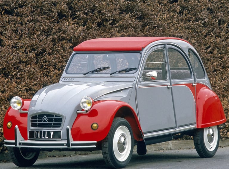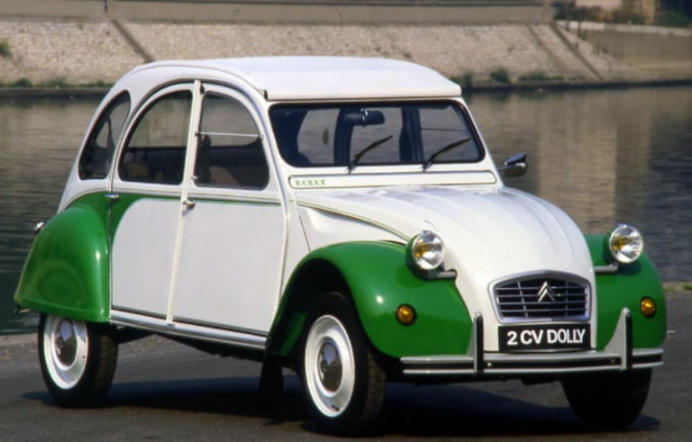 Trois séries de 3, un vrai patchwork : suite au succès de la Charleston, Citroën remet le couvert et propose une nouvelle série spéciale au look rétro. Basée sur la 2CV 6 Spécial, la Dolly dispose d’équipements supplémentaires comme : jantes blanches avec enjoliveurs de Dyane 6, enjoliveur de gouttière en plastique chromé, sièges séparés en tissu (ceux de la Charleston pour les deux premières séries et une variante pour la troisième série : tissu gris moyen à motif à chevrons et joue d’assise en similicuir), capote à ouverture intérieure, pare-chocs large à l’arrière, éclairage intérieur côté conducteur, pare-soleil passager.