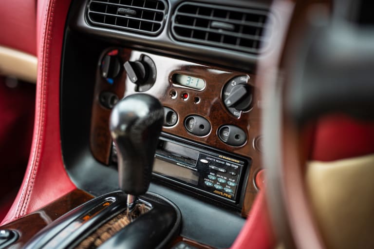 De la XJ-S, la DB7 originelle reprend en effet une bonne partie de la plateforme et la très complexe suspension arrière – sans oublier le moteur, car on retrouve ici le groupe AJ6 dans sa cylindrée de 3,2 litres déjà vue sur la XJ40, agrémenté d’un compresseur Eaton lui permettant de développer la puissance respectable de 335 ch à 5750 tours/minute, le couple maximal s’élevant quant lui à 460 Nm disponibles dès 3000 tours. Ainsi gréée, la DB7 navigue dans les mêmes eaux qu’une Porsche 928 GTS alors à son couchant (V8 5,4 litres, 350 ch), qu’une BMW 850 CSi (V12 5,6 litres, 380 ch) ou qu’une Mercedes SL 500 (V8 5 litres, 320 ch). Auxquelles les esprits taquins ne manqueront pas d’ajouter, trois ans plus tard, la Jaguar XKR (V8 4 litres, 375 ch), vendue 30 % moins cher que l’Aston… On entendra aussi des réflexions désagréables au sujet de la boutonnerie commune avec les Ford Scorpio, ou des feux arrière empruntés à la Mazda 323 F. Mais en définitive, que peuvent les esprits chagrins contre la beauté de l’engin ? Ian Callum signe là un authentique chef-d’œuvre, qui convoque habilement les substrats du style maison sans pour autant tomber dans le piège du retro-design. La DB7 n’est pas une DB6 modernisée ; elle possède sa propre identité et impose des codes esthétiques que l’on retrouvera sur ses descendantes à tous les niveaux de la gamme Aston – tournant ainsi résolument le dos à l’impasse stylistique qu’incarnaient les lourdeurs des séries V.