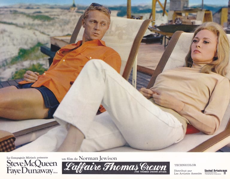 La Silver Shadow revient ensuite en filigrane, çà et là au fil du récit, jusqu’à l’époustouflante scène de conclusion que je ne spoilerai pas, même sous la torture. Inteviewé de nombreuses années après, Norman Jewison était lucide sur son film : « There was not a lot of story here »… De fait, le scénario s’avère à peu près aussi mince que la taille de Faye Dunaway — qui partage l’affiche du film avec Steve McQueen — mais la qualité de la mise en scène, le jeu des acteurs et l’esthétique générale compensent largement l’inconsistance de l’histoire. C’est une Amérique prospère et insouciante que l’on dépeint ; Thomas Crown le dit lui-même : « No complaints ». Il joue au polo, pilote son planeur, se fait construire une maison sur la plage. On est en 1968 mais personne ne parle de la guerre du Vietnam, ni de l’assassinat de Martin Luther King. Deux semaines après la sortie du film, Robert Kennedy était tué à Los Angeles. Ensuite, tout allait devenir très moche, ce qui rend la grâce narrative de The Thomas Crown Affair d’autant plus précieuse : l’époque croyait panser ses plaies mais ne faisait que préparer de nouvelles blessures. Il faut voir (ou revoir) ces plans mythiques tournés sur le rivage, Steve McQueen dans son buggy Meyers Manx à moteur de Chevrolet Corvair, construit selon les prescriptions de l’acteur et que Bonhams a vendu aux enchères, en mars 2020, pour un peu plus de 400 000 dollars. Il faut revoir la longue carrosserie luisante de la Rolls arpenter, avec toute la componction requise en un tel lieu, les allées du Cambridge Cemetery. Il faut réécouter sans trêve la chanson d’ouverture, The Windmills of your Mind — devenue en français Les Moulins de mon cœur — et se souvenir avec émotion de cette élégance ironique, tendre et obstinée, se tenant soigneusement à l’écart d’un monde livré à la brutalité, à la sauvagerie et aux massacres de masse.