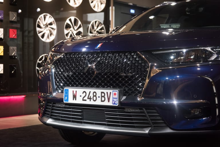 Levons tout de suite le premier doute : non, la République Française n’a pas acheté une DS7 Crossback pour l’occasion, et non, l’argent public n’a pas été dépensé en lésant le contribuable. Premier indice, une plaque de garage en W indiquant clairement que l’Elysée n’en était pas le propriétaire : la voiture n’étant pas encore commercialisée, seul le constructeur pouvait l’immatriculer pour une circulation limitée dans le temps.