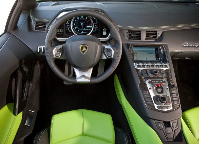 Présentée lors du Salon de Genève 2011, l’Aventador semblait, de prime abord, s’inscrire sans heurts dans une certaine continuité stylistique. À commencer par cette silhouette reconnaissable entre mille : une Lamborghini n’est ni une McLaren, ni une Pagani : au fil des décennies, le concept design s’est bien sûr modernisé mais, depuis la Countach, l’équilibre général des proportions n’a guère varié, dicté par l’implantation séculaire du V12 longitudinale posteriore, autorisant une carrosserie extrêmement basse (14 centimètres de moins qu’une Ferrari F12 !) et les portières à ouverture en élytre qui, plus de cinquante ans après leur première apparition, fascinent toujours autant les badauds. Ce V12 6,5 litres justement, parlons-en : près de cinquante ans après l’apparition de la 350 GT, Lamborghini renouvelait le plus légendaire de ses moteurs, conçu par Giotto Bizzarrini au début des années 60. Ce n’est pas tous les jours que l’on assiste à la naissance d’un 12-cylindres inédit, et celui-ci n’a pas déçu ; il a permis à l’Aventador de se livrer à une course à la puissance échevelée avec les Ferrari F12 puis 812. En partant de ses 700 ch d’origine, l’auto a régulièrement progressé pour aboutir, en 2021, à la LP 780-4 Ultimae, forte de 780 ch et capable de dépasser les 350 km/h ! Cette évolution des performances sur plus d’une décennie témoigne de l’excellence du moteur atmosphérique développé par les ingénieurs de Sant’Agata Bolognese.