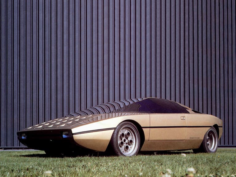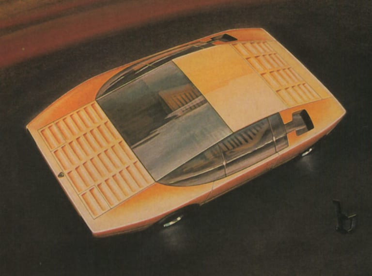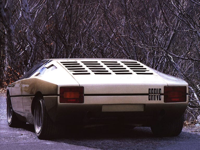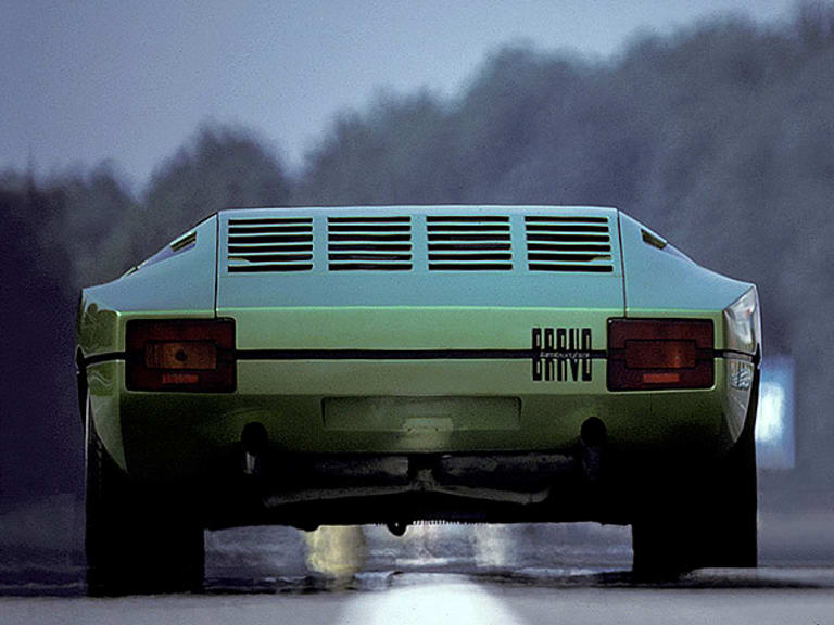 Bertone et Marcello Gandini avaient déjà frappé un grand coup en 1971 avec la présentation du prototype de la Lamborghini Countach, projet accepté par la vénérable firme italienne (lire aussi : Lamborghini Countach), mais ils avaient soif de reconnaissance mais aussi de projets d’image. Quoi de mieux que Lamborghini pour être visible surtout que la marque, en acceptant la Countach, semblait prête à accepter pas mal de délires stylistiques ? Alors, histoire de trouver une remplaçante à l’Uracco, pourtant rentrée tard en production (1973), qui soit dans la même veine que la Countach, Bertone présenta, toujours sous la houlette de Gandini, la Lamborghini Bravo au salon de Turin 1974.
