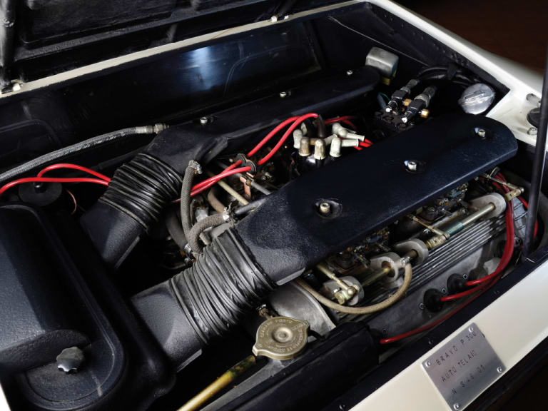 En fait, mis à part le moteur venant de l’Uracco, un V8 3 litres de 300 chevaux, il s’agissait d’une toute nouvelle voiture. Sa ligne tout en coin offrait une surface vitrée incroyable, et l’absence de courbes n’enlevait pas l’agressivité, bien au contraire. A l’arrière, on reconnaissait la patte Gandini par son passage de roue biseauté. Présentée dans une belle teinte marron tout à fait digne des années 70 à Turin, elle attirait le regard, inévitablement.