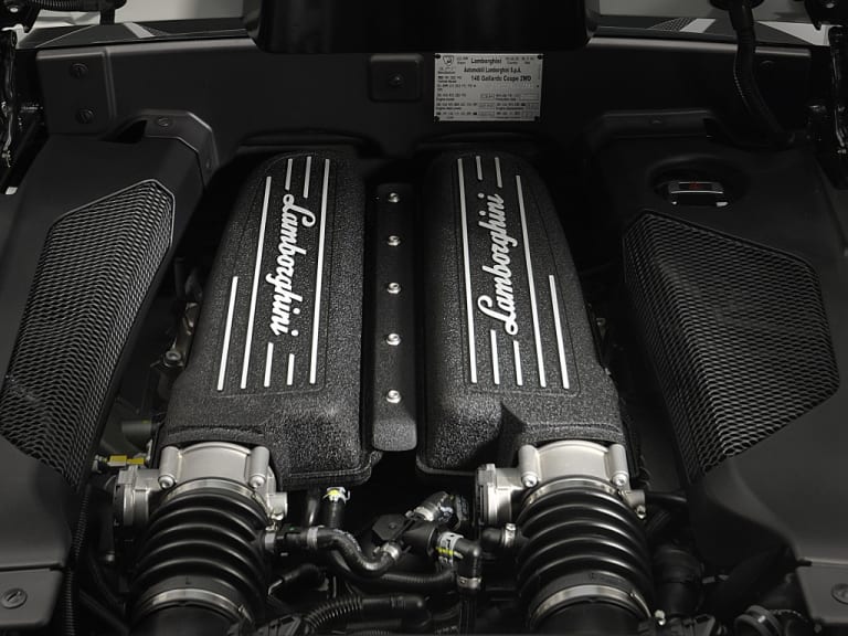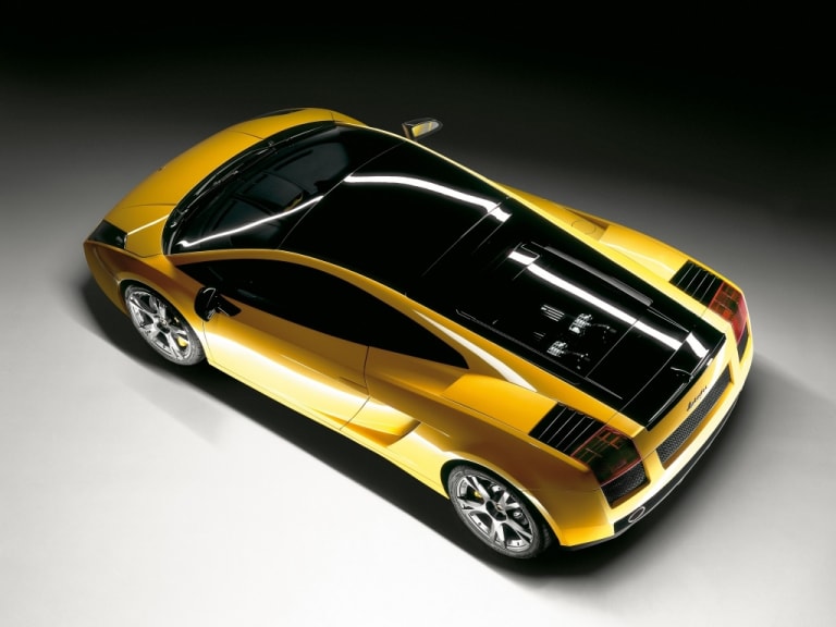 La nouvelle voiture est présentée en 2003. Elle est plus compacte que la Murciélago, mais partage avec elle un air de famille, bien que le design soit simplifié. Le concept des P140 puis Calà est d’une certaine manière validé, puisqu’elle propose elle aussi un tout nouveau V10 de 5 litres, développant la bagatelle de 500 chevaux. Avec ce moteur original, elle se distingue de ses cousines par alliance, les Porsche et leur flat 6. Ce V10 n’est pas une évolution du moteur des P140 et Calà, mais une pièce développée par Cosworth, elle aussi filiale d’Audi (quand on parle de razzia Volkswagen à l’époque, hein). La baby Lambo s’offre en outre une transmission intégrale (sans différentiel central, en fait il s’agit du même système que celui de la Diablo VT, ou presque). Ainsi équipée, la Gallardo s’avère ultra-efficace et prête à concurrencer la Ferrari 360 Modena ou la Porsche 911 Turbo.