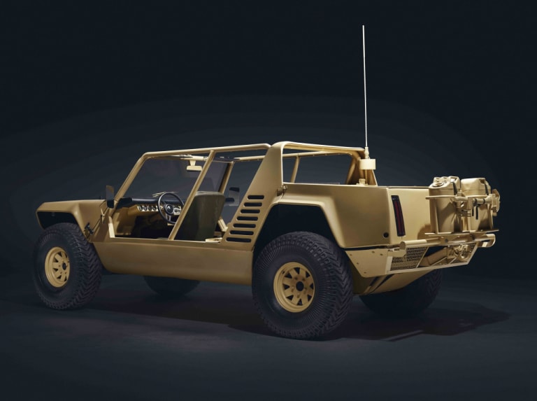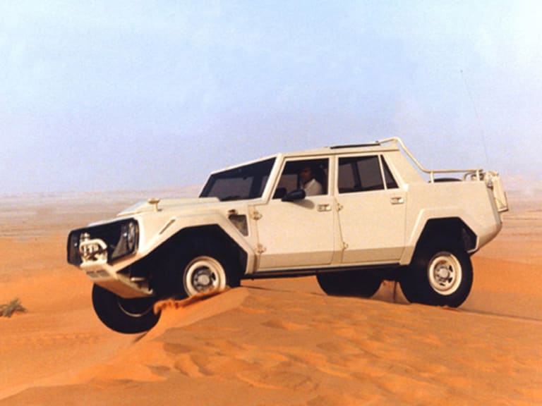 A l’origine, le LM002 s’appelait Cheetah, et répondait à un appel d’offre de l’armée américaine pour remplacer ses Jeeps (les Willys hein). Soucieux de trouver de nouveaux marchés permettant de financer la production de ses véhicules « classiques », Lamborghini propose une auto 4×4 à la carrosserie en fibre de verre, et dotée d’un moteur V8 Chrysler à l’arrière de 5,9 litres et 170 chevaux. Cette implantation à l’arrière rendait l’engin très peu maniable, et sa puissance était un peu juste pour les 2,6 tonnes à propulser.