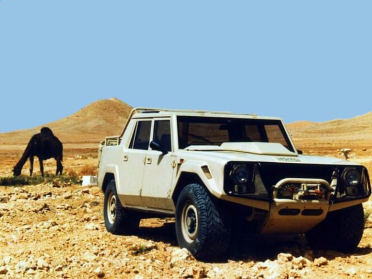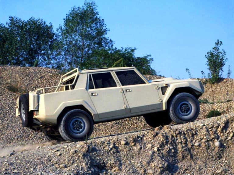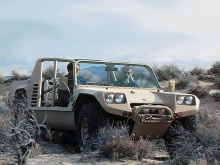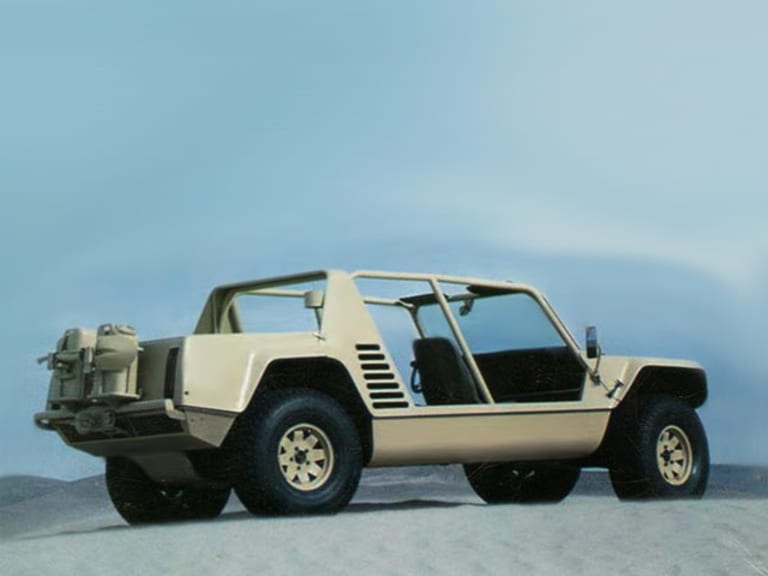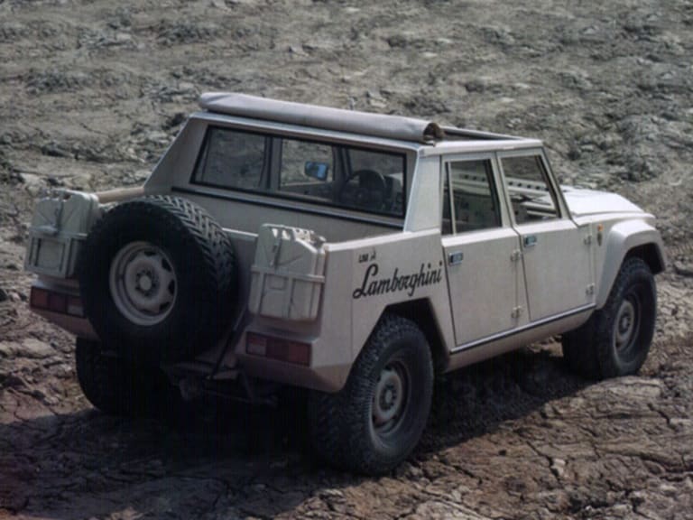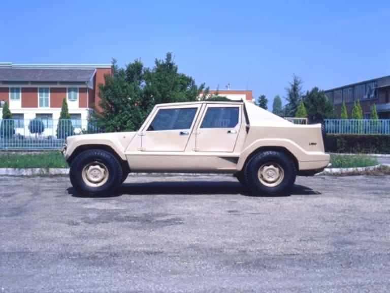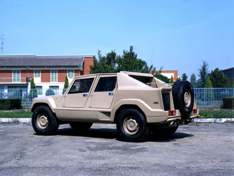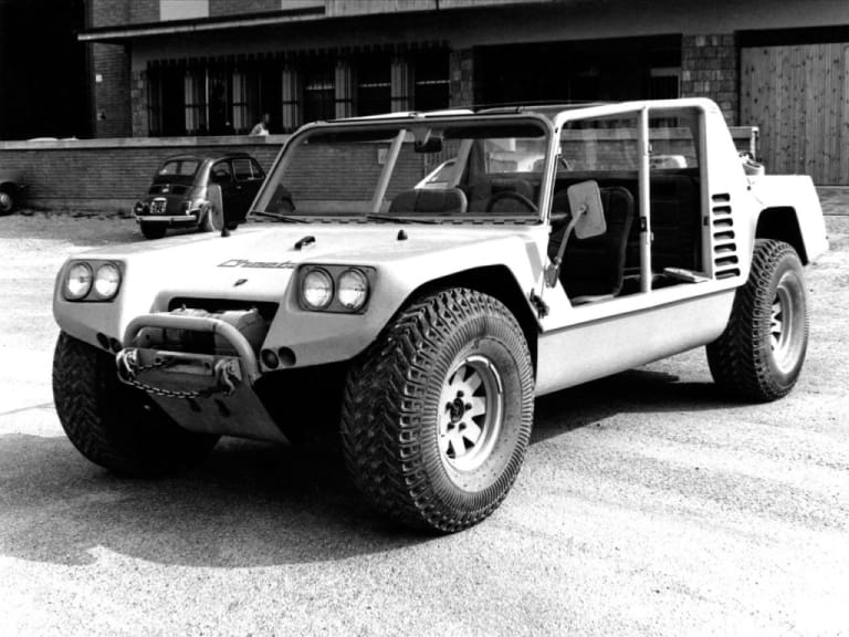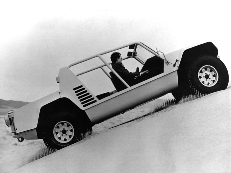 Cette aventure surréaliste démarre au milieu des années 70, période automobilement bien mouvementée (et propice à de sacrées bizarreries). Lamborghini étudie alors pour le compte d’un sous-traitant de l’armée américaine — du nom de Mobility Technology International — un véhicule offroad de hautes performances pour manœuvrer à toute berzingue dans le désert, sur la neige, dans la boue, le gravier, etc. Les prospects ciblés seraient les différents corps d’armée ainsi que des sociétés d’exploration et de production pétrolière. D’autres sources évoquent explicitement la participation de Lamborghini à l’appel d’offres de l’armée américaine, à la suite duquel le Humvee sera retenu, ou alors à une simple présentation non assortie d’un essai. Ces deux histoires ne sont sûrement que les deux faces d’une même médaille, dont le pitch reste hallucinant. Pensez-vous, LE fabricant de voitures italiennes les plus crâneuses au monde — fignolées à la main et à l’oreille — qui s’estime légitime pour trimbaler des chiens de guerre ricains ou des chasseurs de pétrole en plein désert…