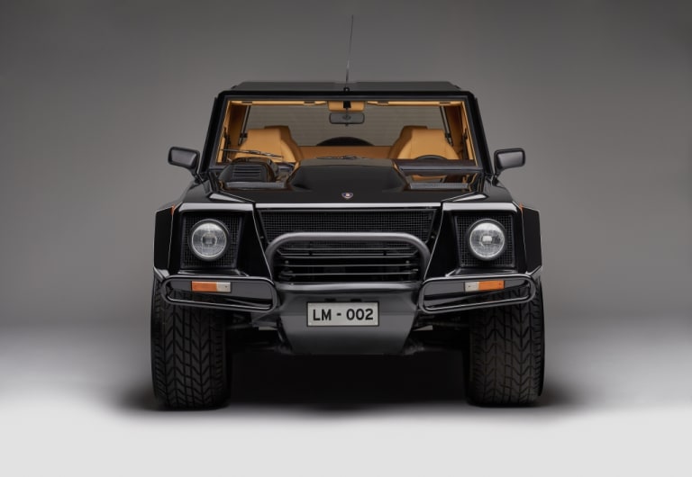 Projetez-vous la scène : vous marchez, par une belle après-midi, dans les rues d’une quelconque ville italienne gorgée de soleil et de bolides, à s’en rendre fou. Le nez au vent, il vous semble entendre derrière vous le feulement d’un chat en train de chercher la mouise à quelqu’un. Ça se rapproche : « Mais oui ! C’est bien un 5,2 litres de Countach QV que je reconnais dans mon dos! », vous dites-vous, enjoué et impatient. Vous vous attendez à voir passer un vaisseau spatial signé Gandini. Plus qu’une seconde de plus à attendre, vous vous tournez et vous voyez passer… une brique. Un genre de tracteur Cournil, en beaucoup plus flippant, de couleur vive avec des treuils à chaque bout, des tonnes de barres et de grilles, et des roues de camion tombereau. Non, ce n’était pas une hallucination : c’est l’étrange et flamboyante Lamborghini LM002, dont voici l’histoire.