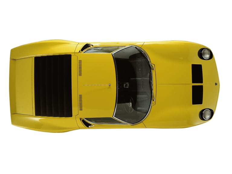 À la fin des années 1960, lorsque la médiasphère relevait d’une autre dimension, les images de la Miura étaient rares mais suffisantes pour émerveiller un petit garçon. Du haut de ma bicyclette Dolmen (pneus 500 semi ballon), en 1969 ou 1970, je me suis trouvé « au-dessus » des 105 cm (ou 110 si elle était une S) de hauteur d’une Miura dans ma petite patrie provinciale. Elle était jaune-vert, et je ne devais pas avoir les yeux assez grands pour la dévorer des yeux. Si basse, la sellerie de couleur claire, la batterie d’interrupteurs au plafond, juste au-dessus du rétroviseur : quelle merveille. Malheureusement, je n’ai pas entendu le moteur ni ne l’ai vue rouler. Une telle auto, c’était l’esprit du temps. Mon atmosphère musicale de la Miura, ce sont les rois mages de l’Easy listening, Burt Bacharach, Henry Mancini, et même Lalo Schifrin, avec un doigt de Motown. Le sillage de la Miura, sa palette de couleurs vives et nettes, porte un je-ne-sais-quoi de Velvet Underground, de culture Pop, de Nico. Et nous y sommes, voilà encore une brochette de poncifs tant cette auto a paru dire son temps, évanoui avec elle en 1972. Mais, faute de Miura sous la main, on s’emplit d’images, de facilités, d’évocations peut-être illusoires. La piloter, à condition de savoir le faire, demande sûrement de la poigne, de l’endurance et du cran. En 1966, les voitures n’étaient pas sur-assistées comme un demi-siècle plus tard.