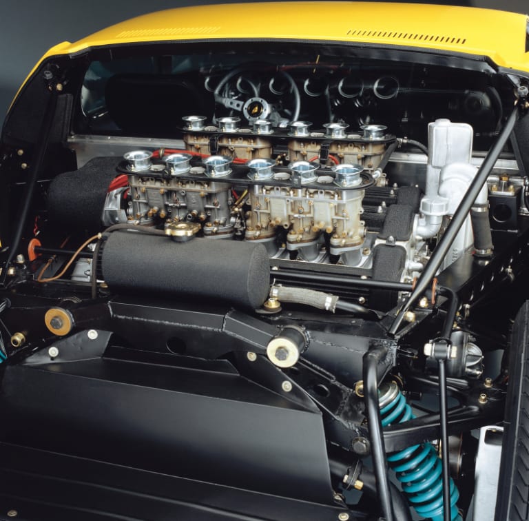 L’impression d’apercevoir une Ford GT 40 en voyant une Miura n’est pas qu’une intuition. L’ingénieur Stanzani a bien évoqué cette référence pour l’implantation du moteur en position centrale arrière et permettant une auto très équilibrée et très basse. Mais l’initiative d’installer transversalement le moteur, en prenant soin de ne pas placer la boîte sous le moteur, fait la Miura. Cependant, un V12 transversal en position centrale arrière n’était pas une nouveauté. En 1964, huit ans après la Bugatti type 251 (L8 double arbre, 2,5 litres), Honda expérimentait en formule 1 cette architecture avec un V12 de 1 495 cm3 sur la RA271, continuée en 1965 avec la RA272 victorieuse au grand prix du Mexique avec Richie Ginther, malgré une série d’échecs sérieux. Concordance des temps et sources paradoxales, la compétition inspire les ingénieurs en charge d’un projet que l’initiateur ne veut pas imaginer en situation de course.