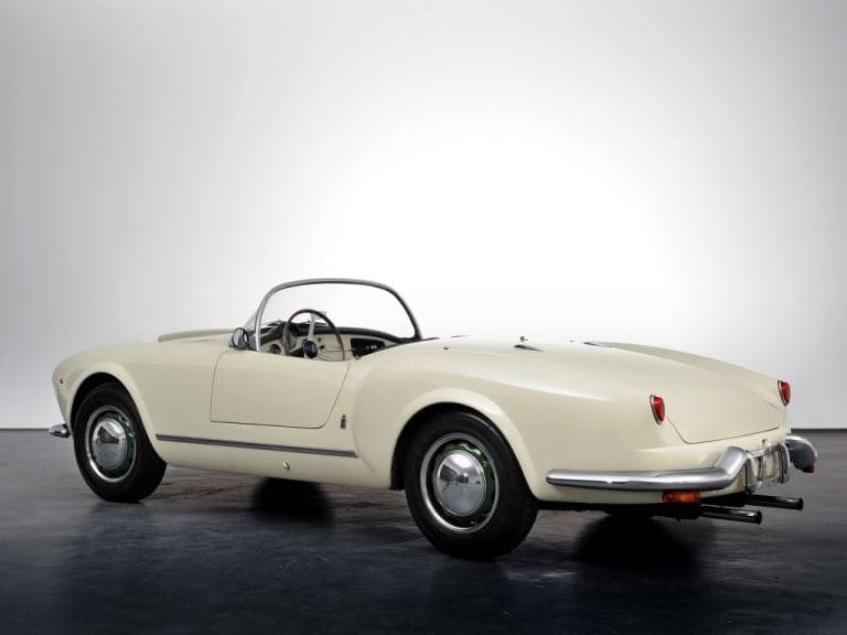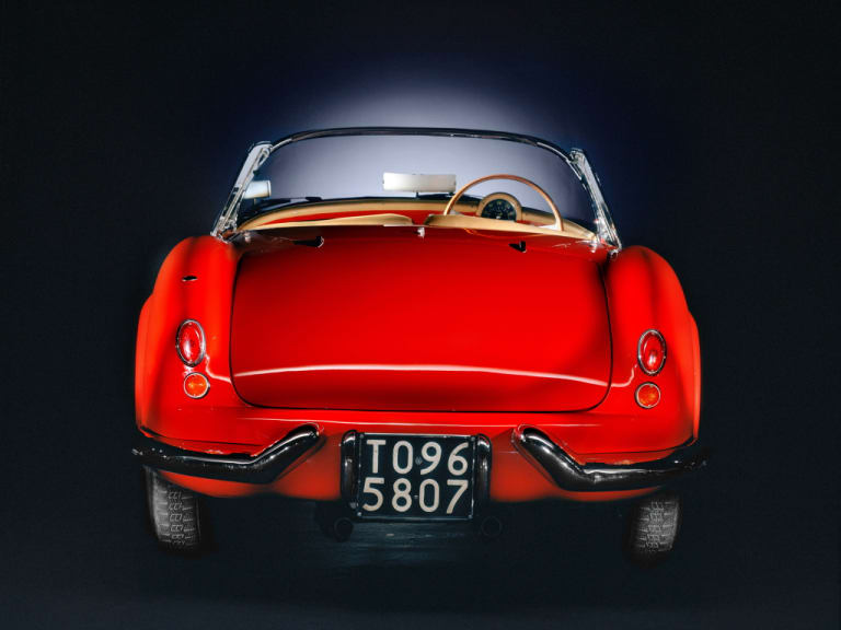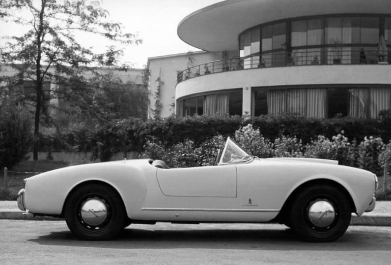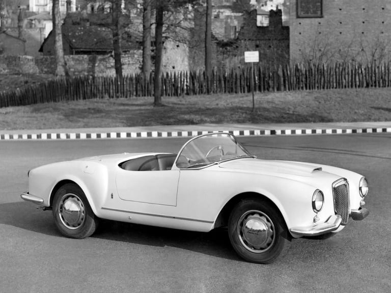 Le prototype de la Lancia Aurelia B24 Spider en 1954. Notez l’absence de pare-chocs !
