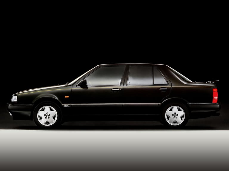 La Lancia Thema est le fruit d’une coopération entre Fiat, Lancia, Alfa Romeo et Saab. La plateforme type 4 donnera naissance, outre la Thema (qui existait aussi en limousine), à la Fiat Croma, l’Alfa Romeo 164 et à la Saab 9000. On peut remarquer l’air de famille de chacun de ces modèles à l’encadrement des portes identiques (sauf sur l’Alfa Romeo, arrivée plus tard sur le projet). Présentée en 1984, la Thema est disponible en berline et en break, et proposa tout au long de sa carrière de nombreux moteurs : des 4 cylindres essence ou diesel, mais aussi deux V6 (le 2,8 PRV développant 150 ch et le 3 litres Alfa Romeo de 175 ch). Haut de gamme chez Lancia, la Thema est une honnête berline, bien dessinée, élégante, sobre et discrète.