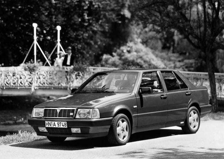 Je le confesse d’emblée : j’aime la Thema. C’est une auto que j’ai toujours appréciée, que j’ai admirée dès sa présentation, à l’été 1984. Ses lignes équilibrées, d’une élégance classique et rejetant toute ostentation, le quatre-cylindres « Lampredi » animant la majorité de ses variantes, son luxe discret, sans oublier le très beau break que Pininfarina établit en 1986 sur la base du dessin commis par Italdesign, tout cela brosse le portrait d’une automobile attachante et qui s’avérait en tous points crédible face aux références germaniques du moment. Oh, bien sûr, il y eut quelques grincheux pour tordre le nez car, en comparaison de la Gamma à laquelle elle succédait, la nouvelle venue pouvait apparaître comme tristement banalisée. De fait, sous le capot de la Thema il ne fallait pas s’attendre à trouver le flat four Lancia dont la médiocre fiabilité avait ruiné la réputation de la Gamma, tandis que la plateforme, les portières, la baie de pare-brise et la quasi-totalité des moteurs étaient partagés avec la Fiat Croma. C’est que la Thema, à l’instar de la Fiat, de la Saab 9000 et de l’Alfa 164, était issue du fameux projet Tipo 4, destiné à partager les coûts de conception des quatre grandes berlines que la firme suédoise, Alfa Romeo et le groupe Fiat avaient lancées dans l’espoir de rivaliser avec la fine fleur des grandes routières européennes.