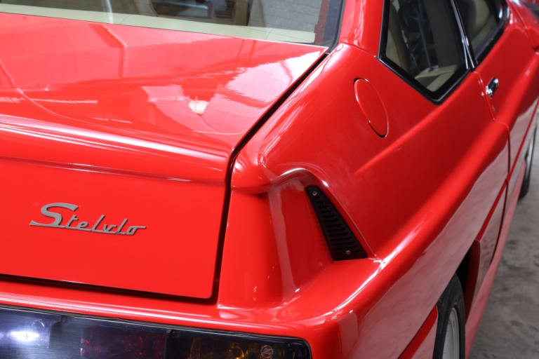 Le jour de la présentation au patron d’Autech, Shinichiro Sakurai, le staff transalpin devait se dire qu’il n’avait pas été très inspiré sur ce dessin là, mais contre toute attente, le projet est validé. Basée sur la Nissan Leopard, la Stelvio reçoit un V6 3 litres développant 280 ch (on parle en réalité d’une puissance supérieure de 40 ch, mais un « gentleman agreement » entre les constructeurs japonais les auto-limitait à cette puissance, qui fut donc annoncée officiellement, lire aussi: The Japanese Gentleman’s agreement).