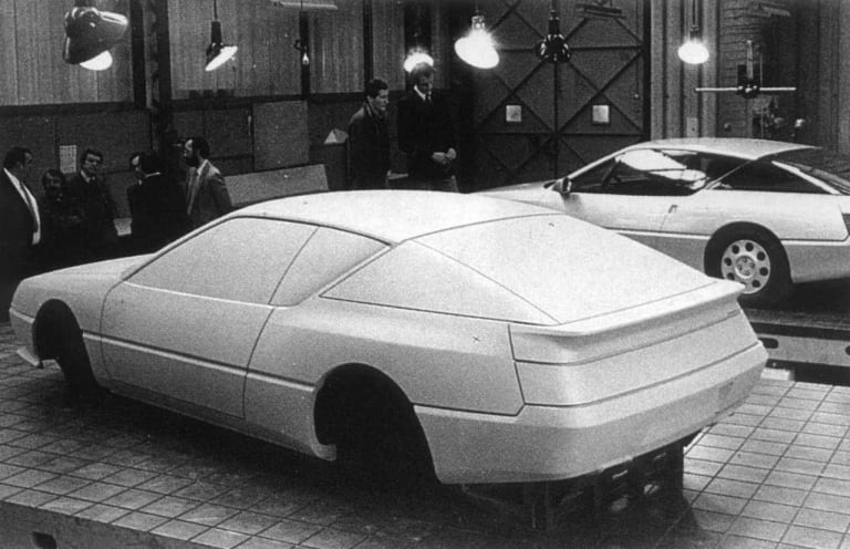 Dès le début des années 80, le Berex travaille sur les projets D500/D501 qui donneront naissance aux V6 GT et Turbo : en haut le dessin d’Yves Legal et du Berex, en bas le dessin de Heuliez, finalement retenu, de Gérard Godfroy.