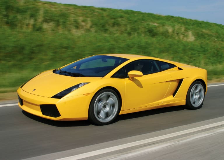 Développé chez Audi, le dix-cylindres n’essaie pas de dissimuler ses origines ; ses valeurs d’alésage et de course sont les mêmes que celles du V6 3 litres bavarois, largement répandu en ce temps-là sous les capots des A4 et A6. Il en reprend aussi l’angle d’ouverture de 90° – certes pas le plus favorable pour un V10, mais il suffit de prendre le volant de l’auto pour être rassuré par son caractère, en tous points conforme aux promesses d’une fiche technique qui semble calibrée pour terrasser la 360 Modena. La Gallardo dispose ainsi de 500 ch, soit exactement 100 de plus que sa rivale ; le couple atteint pour sa part la confortable valeur de 510 Nm à 4500 tours/minute (versus 372 Nm à 4750 tours pour la Ferrari). Bien sûr, et malgré une construction en aluminium chère à qui vous savez, la Lamborghini s’avère plus lourde de 40 kilos que la voiture de Maranello, en raison de la présence – imposée en début de carrière – d’une transmission intégrale distribuant 70 % de la puissance sur le train arrière. Capable dès l’abord de dépasser les 300 km/h et habillée d’une carrosserie due au talent de Luc Donckerwolke, à la fois suggestive et modernisant habilement les fondamentaux de la marque, la Gallardo va immédiatement connaître le succès ; Lamborghini en produira plus de 14 000 exemplaires en dix ans – un record absolu pour la firme, que la Huracán, qui a pris le relais en 2013, a d’ores et déjà battu.