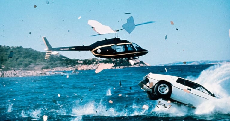 En 1977, Roger Moore a cinquante ans. C’est dans The Spy Who Loved Me qu’il va réellement prendre possession du rôle de Bond, imposer son style et ses traits d’humour, très différents de ceux de Sean Connery. Et Wet Nellie – tel est le surnom dont la Lotus se retrouve affublée, en un amusant clin d’œil à l’autogyre Little Nellie, apparu dix ans plus tôt dans You Only Live Twice – va considérablement l’y aider. À l’instar de la DB5, l’auto n’apparaît somme toute que peu de temps à l’écran sur les 125 minutes du film, mais la séquence de poursuite va durablement marquer les esprits (héhé). On y voit la Lotus traquée par un hélicoptère Bell 206, qui mitraille abondamment la voiture lancée sur les petites routes de Sardaigne. Un excellent prétexte pour mettre en scène la transformation de l’engin en sous-marin, avant que Bond ne détruise l’aéronef à l’aide d’un missile tiré depuis le hayon arrière (pour les amateurs de miniatures, les deux véhicules ont été reproduits en deux échelles différentes par Corgi Toys). Entièrement fonctionnelle, Wet Nellie n’est pas une maquette mais un submersible de type wet sub, dont les évolutions filmées correspondent donc à la réalité, ce qui n’est pas un mince exploit. S’ensuivent de longues pérégrinations nautiques et un combat contre des plongeurs malveillants au cours desquels plusieurs gadgets sont utilisés (toujours en référence à la DB5), puis l’Esprit émerge des flots sur une plage bondée de touristes assistant bouche bée à l’irruption de l’auto, dans l’une de ces scènes au comique douteux dont la période Moore aura été fertile.