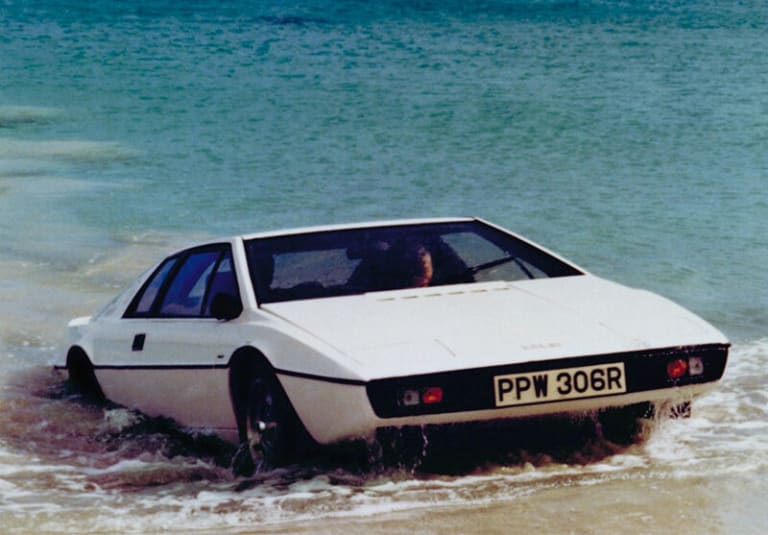 Depuis Goldfinger, une bonne part des spectateurs apprécient les James Bond pour les nombreux gadgets, plus ou moins spectaculaires, dont le département Q dote l’agent secret au début de chacune de ses missions. « It’s the biggest. It’s the best. It’s Bond! And beyond » clame le teasing de The Spy Who Loved Me. Dans un tel contexte, le production designer Ken Adam a été prié de trouver des idées susceptibles d’ébahir un public qui, à cet égard, n’a plus été réellement surpris depuis le bon vieux siège éjectable de la DB5. Une bonne part de l’action du film se déroulant sous l’eau, pourquoi ne pas imaginer une voiture capable de se transformer en sous-marin ? Le film étant à présent un classique et les effets spéciaux devenus ce qu’ils sont, aujourd’hui plus personne ne s’étonnerait d’assister à une telle mutation mais, en 1977, il fallait beaucoup d’imagination – et quelques moyens – pour concevoir un tel projet, mené à bien avec le précieux concours de la société américaine Perry Oceanographic. Et c’est sur la toute fraîche Lotus Esprit que la production jette son dévolu. Présentée à l’automne de 1975, l’auto coche toutes les cases : elle est anglaise, c’est une voiture de sport à l’esthétique aussi contemporaine que suggestive et sa physionomie se prête idéalement à l’exercice – il est vrai qu’on a du mal à imaginer une Aston Martin V8 Saloon bricolée de la sorte… De surcroît, Colin Chapman n’a évidemment rien contre l’extraordinaire publicité que l’apparition du modèle entre les mains de James Bond va octroyer à sa firme tandis que, de son côté, « Cubby » Broccoli table sur un certain rajeunissement de l’image de son espion fétiche !