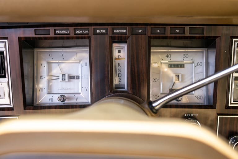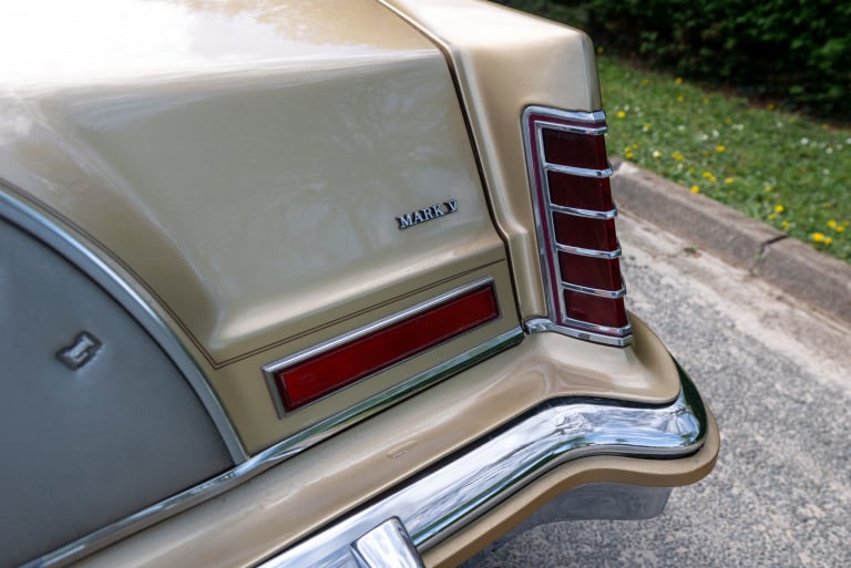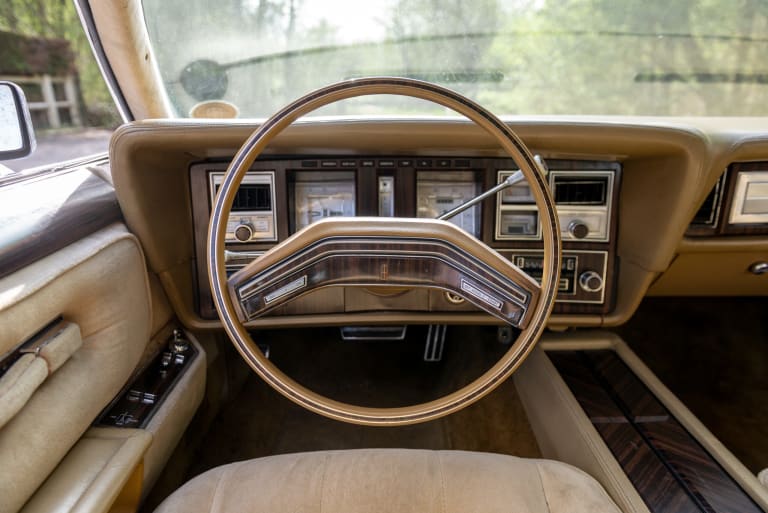De plus, cet exemplaire possède tous ses accessoires d’époque, sa trousse à outils, sa documentation américaine et un important dossier de factures, attestant de son entretien méticuleux. Les Lincoln Continental Mark V, en particulier cette série limitée, sont devenues rares sur le marché européen et évoquent une époque où le luxe se vivait sans compromis.