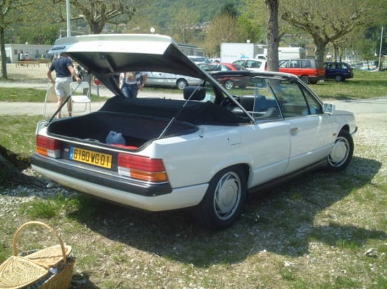 N’allez pas croire qu’il a suffit d’enlever le toit. Non le travail a été plus profond, et montre bien les compétences du carrossier belge, qui justifièrent la confiance que Renault avait en lui à l’époque (mais, on l’a vu, la mort de Georges Besse changea la donne). En effet, le cabriolet R25 V6 Turbo est une vrai deux portes, exit les deux portes arrières. De même, le coffre a été totalement transformé pour préserver la ligne fluide du cabriolet 25.