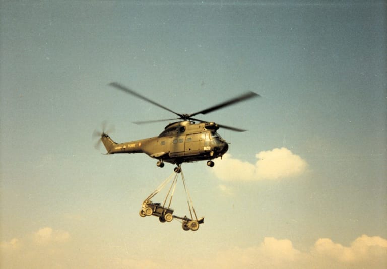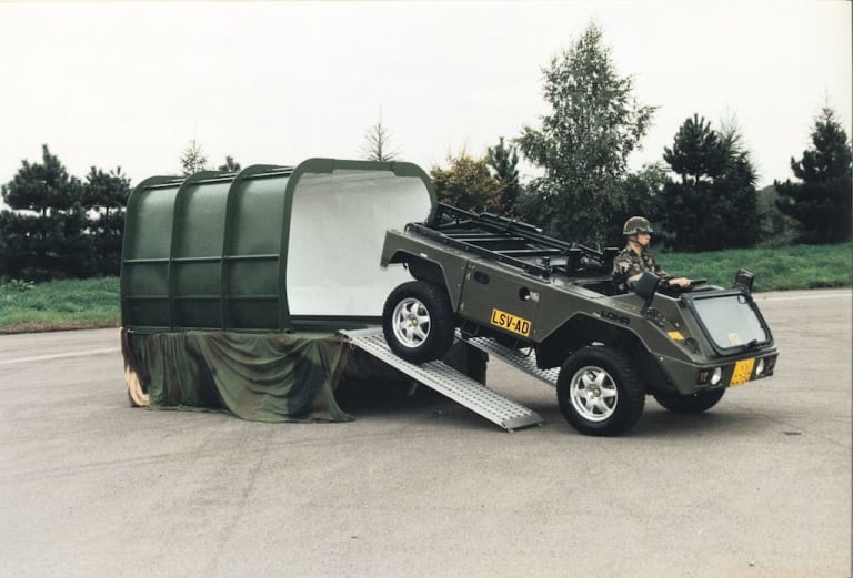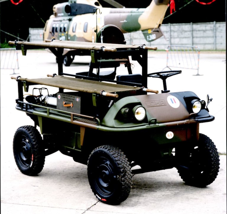 Et alors, où est le rapport avec la Lohr Fardier me direz-vous. Michel Odinet se retrouve ruiné par l’aventure Minima et la réalisation d’un certain nombre de prototypes (une dizaine sans doute, dont un conservé par la famille Bouffort et présenté à Rétromobile). Robert Lohr, conscient du potentiel et de l’enthousiasme d’Odinet, va alors l’embaucher et lui confier un nouveau projet : répondre à l’appel d’offre de l’Armée de Terre pour un petit véhicule destiné aux forces aéroterrestre. Le cahier des charges est clair, pouvoir emporter 500 kg de charge, doté de capacités tout terrain, suffisamment petit et léger pour être parachuté, voire transporté par hélicoptère grâce à un filin.