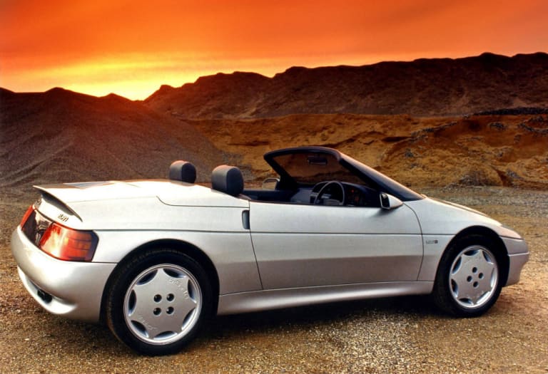 A la clé, un atmo de 130 chevaux (qui s’avère rarissime avec seulement 180 exemplaires produits), un turbo de 165 chevaux (plus intéressant il faut le dire). Lancée en 1989, la Lotus Elan M100 surprend, intéresse, partage les journalistes qui louent sa tenue de route mais, ancrés dans des schémas anciens (“le sport, c’est la propulsion”) finissent tous par regretter l’ancien temps : un réflexe qu’on retrouve souvent encore aujourd’hui. Les même louant les qualités de la Citroën 7, 11 ou 15 révolutionnant le genre dans les années 30, comme quoi !. Bref, la petite Lotus est trop américaine pour les uns (à cause de GM), trop japonisante pour les autres (à cause du moteur Isuzu), trop mondiale quoi… Sans parler d’un héritage pas si renié que cela mais que les gardiens du temple n’admettent pas : une traction ? Quelle hérésie.