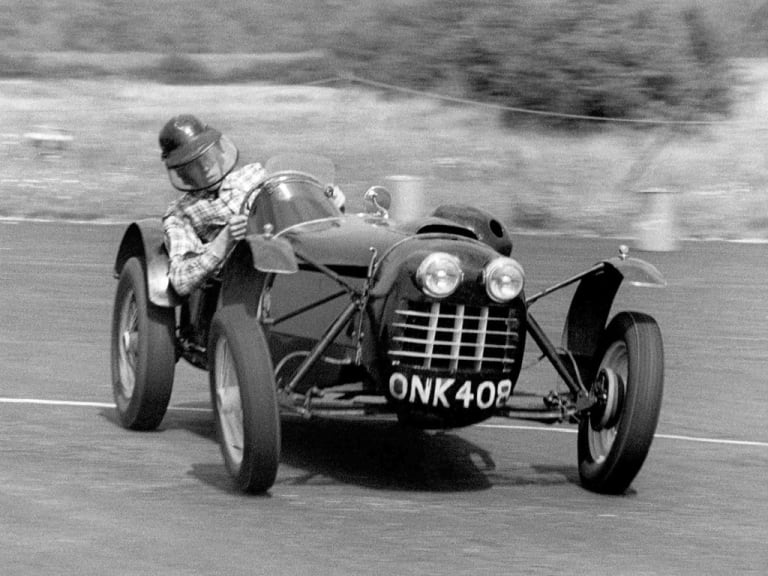 A ses heures perdues, poussé par sa petite amie (qui deviendra sa femme) Hazel, Colin fabriquait donc ses voitures pour son usage personnel et la compétition. Son premier modèle, la Mk I, dérivait étroitement de l’Austin Seven (un signe ?), et lui permit de gagner quelques compétitions locales, les gains des courses servant à fabriquer la seconde voiture, la Mk II en 1949. Avec la Mk II, on aperçoit déjà les prémices du style Lotus, particulièrement des Mk VI et Seven. Son expérience de la RAF, de l’aluminium, et de la compétion lui forgeait une conviction : « light is right » ! Pour concevoir une voiture de sport compétitive et pas chère, il fallait se focaliser non sur un gros moteur gourmand en capitaux, mais sur la légèreté, la suspension et la tenue de route de la voiture !