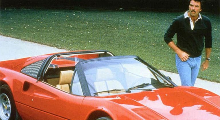 En ce début des années 80, une série aujourd’hui culte fit beaucoup pour encourager les jeunes garçons dans leur passion naissante pour les automobiles : Magnum (« Magnum PI » en VO). Thomas Sullivan Magnum IV représenta pour beaucoup l’idéal masculin, celui que nous voulions tous devenir : beau, drôle, charmeur, il avait un métier à risque, une vie rêvée, dans un cadre idyllique (la superbe villa du célèbre écrivain Robin Master à Hawaï), et surtout, il conduisait une Ferrari 308 GTS rouge qui, soyons honnête, sortait du lot au milieu du flot des voitures « so 70’s » de la circulation d’Honolulu. Que celui qui ne s’est jamais imaginé à la place de Magnum lève le doigt.