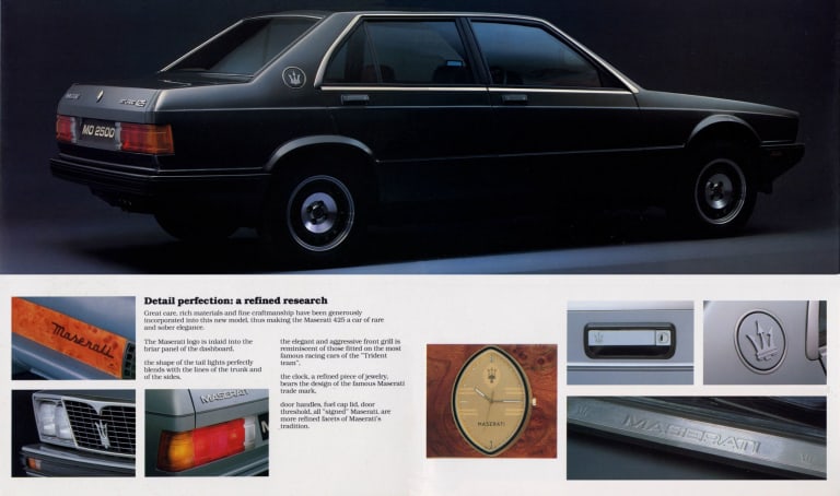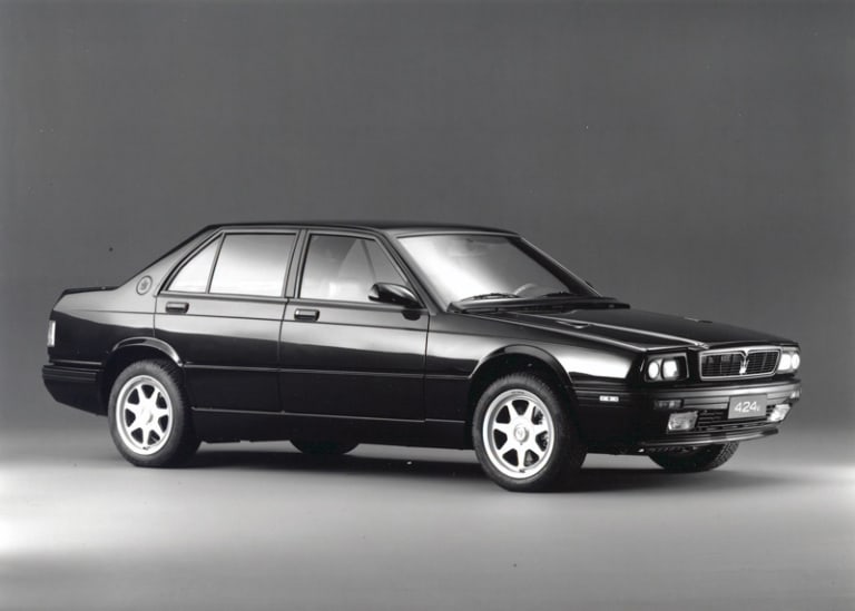 Tout commence donc avec la 425, une berline qui se range, dans la gamme, en dessous de la Quattroporte III (lire aussi: Quattroporte III). Elle est plus compacte mais aussi plus sportive dans la philosophie. Elle dispose d’un V6 2,5 litres (ce qui explique son nom, mais n’allez pas croire que tout sera toujours aussi simple) de 196 chevaux, ce qui en fait une berline très performante à l’époque. Elle sera fabriquée jusqu’en 1989 (devenant 425i en 1987 grâce à l’injection) à 2372 exemplaires.