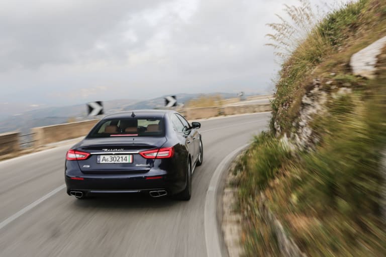 Cette relative discrétion des vocalises (à l’intérieur) est un peu frustrante, avouons-le, alors que la Ghibli S et son V6 de 100 chevaux de moins m’avait enchanté de son bruit rauque dans les petites routes de montagne. Mais il faut bien affirmer sa philosophie, et la Quattroporte sixième du nom semble être revenue aux fondamentaux de la 3ème du nom (lire aussi : Quattroporte III) malgré des performances autrement plus sidérantes (et une fiabilité sans commune mesure).