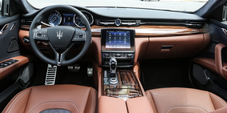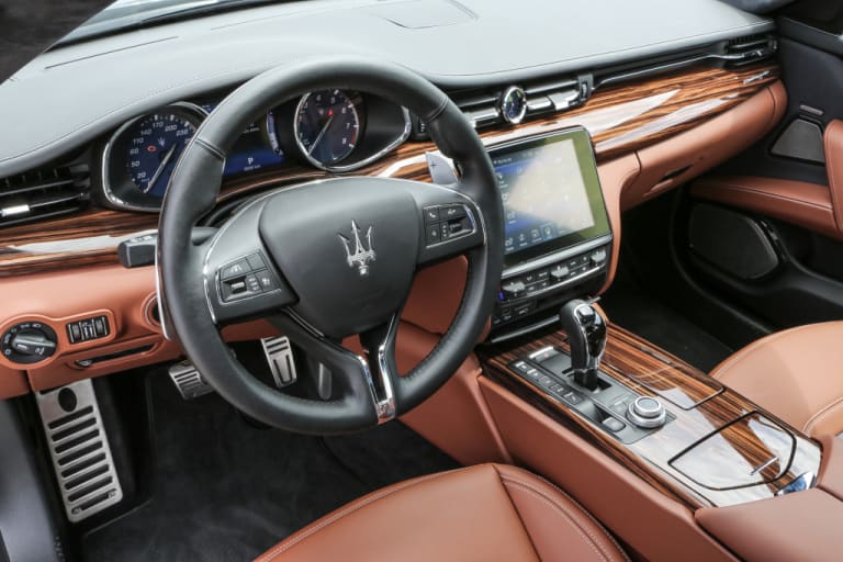Cuirs clairs, boiseries à gogo, la montre au trident pour le petit côté kitsch qui va bien. Tout cela ne sent pas la rigueur teutonne certes, mais les progrès en la matière sont flagrants depuis les années 80, et puis peu importe en fait, l’important, c’est de rouler en Maserati, pas de singer une allemande. Une vraie Maserati se doit d’avoir des défauts, sans cela, l’aimerait-on autant ?