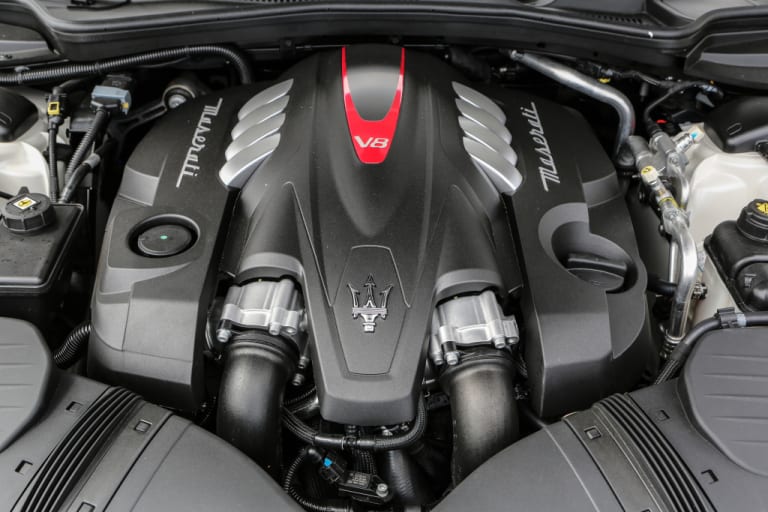 Bien sûr, vous me répondrez que la 4ème génération était déjà disponible en V6 (lire aussi : Quattroporte IV), mais il s’agissait selon moi d’une anomalie : cette Quattroporte IV clôturait l’ère Biturbo où le V6 avait régné en maître pendant toute une décennie, il en restait donc des séquelles heureusement compensées par l’excellent V8 issu de la Shamal (lire aussi : Shamal) et qu’on retrouvera aussi sur l’excellente et désirable 3200 GT (lire aussi : 3200 GT). Ne parlons même pas de l’anecdotique Quattroporte II au V6 de Citroën SM (lire aussi : Quattroporte II).