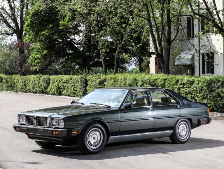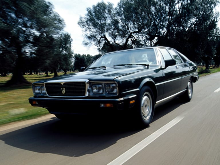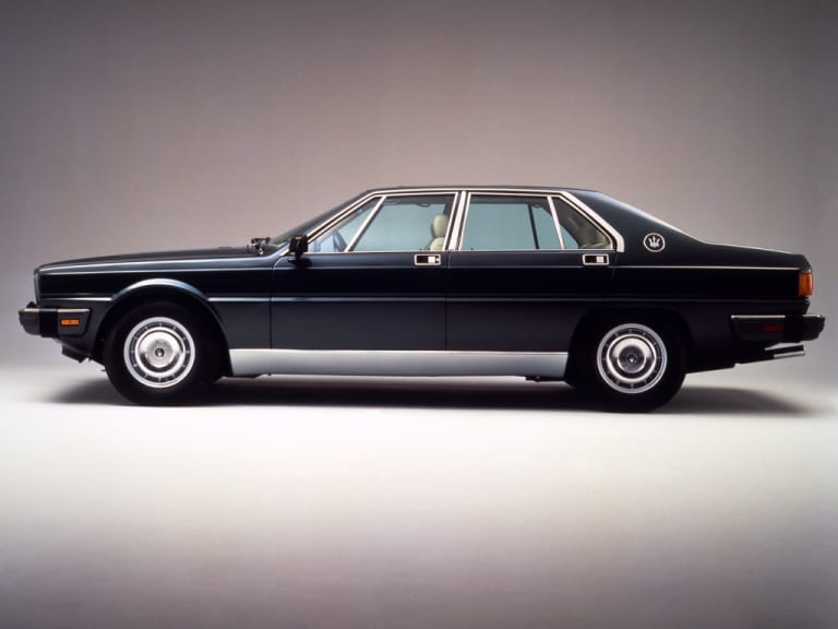 Lancée en 1979 avec un V8 4.2 litres (en fait 4 136 cc) de 260 chevaux, elle récupère rapidement une évolution portée à 4.9 litres après seulement 69 exemplaires produits. Avec 280 chevaux, elle peut désormais atteindre sans soucis les 230 km/h. La Quattroporte III “classique” sera produite à 2 025 exemplaires jusqu’en 1988, mais voilà déjà quelques mois que les ventes fléchissent sérieusement. C’est pour cela qu’est présentée la Royale en 1986 et qu’elle rentre en production réellement en 1987.