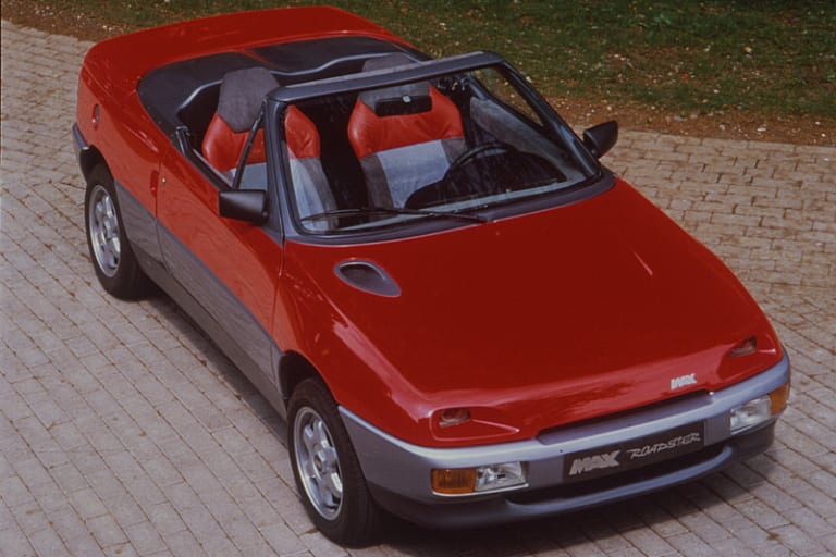 Certains ont rêvé la Citroën AX dans une version cabriolet, comme les portugais de AG Engineering (lire aussi : Citroën AX BB Cabrio), d’autres reprenaient l’étude de Kick Design à son compte, sous le nom de Max Motors, pour proposer à une clientèle particulière un petit roadster léger, compact et fun : la Max. A l’origine, Kick Design voulait montrer ses capacités de création, d’ingénierie et sa maîtrise des carrosseries « plastiques ». Dans son escarcelle, le projet d’une petite voiture déclinable en coupé, cabriolet, roadster et même pick-up.