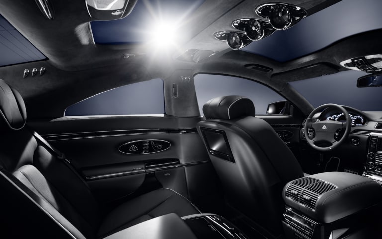 La ligne de toit, tout en arc, est une prouesse technique, faisant sans doute de ce coupé la plus belle des Maybach 2.0. Xenatec crée de toutes nouvelles pièces comme les panneaux latéraux, les portes géantes ou encore les pare-chocs. Tout est quasiment réalisé à la main, les centaines d’heures de main d’œuvre et de matière grise se payant au prix fort: 675 000 € sans les taxes, quand une Bentley Continental ou une Rolls ne dépassent pas 400 000 € TTC ! C’est à ce prix – 807 000 € TTC, hors options – que les futurs coupés – on parle alors d’une centaine prévus sur trois ans – pourront arborer le logo Maybach et se faire entretenir dans les points de service agréés.