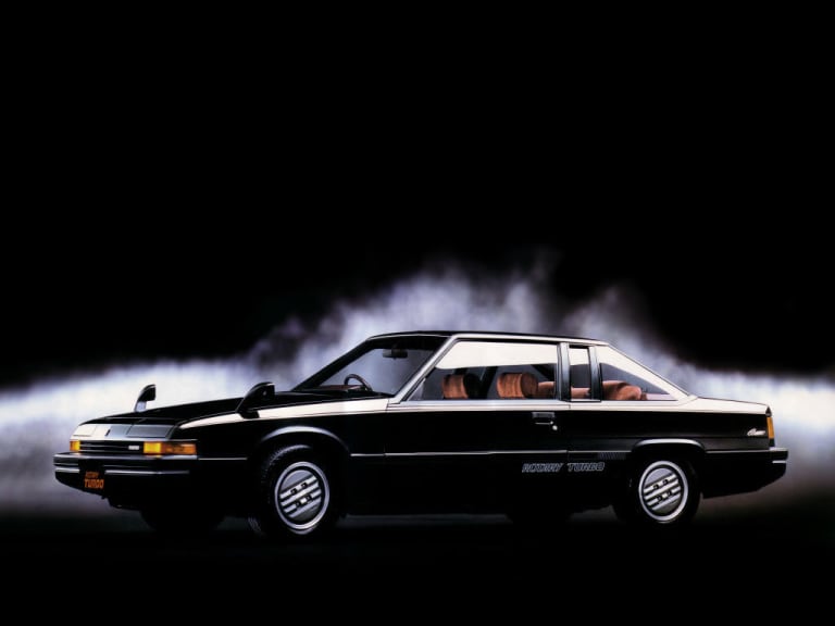 Toujours basée sur la Luce, elle reprend ce coup-ci le nom local de la berline lui servant de base. C’est donc sous le patronyme de 929 coupé qu’elle est vendue à partir de 1981 en Europe. Initialement avec un moteur un peu faiblard de 89cv (2L à course longue, typé couple), elle s’équipera dès 1984 d’un nouveau 2 litres à l’architecture carrée (alésage = course) allant de 100 à 120 chevaux avec l’utilisation de l’injection, et offrant un couple plus haut perché. Les Japonais auront le droit en complément à plusieurs moteurs à rotor, repris des RX7 FB contemporaines, allant de 100 à 165 chevaux en version turbo. L’auto pesant autour des 1200 kg, il n’y a pas de quoi être décoiffé, mais les performances suffisent à s’intégrer facilement dans le flux de la circulation actuelle (10,6s le 0-100 pour le 2L injection, et 9s pour le rotor turbo).
