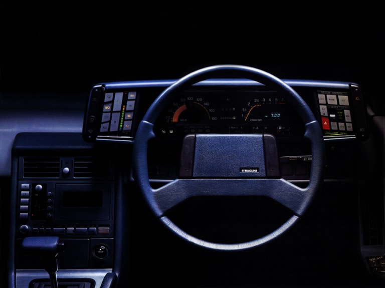En revanche, l’intérieur fera moins débat. Certes c’est droit, mais on a la possibilité d’avoir un intérieur coloré (rouge vin ou marron par exemple), une console à l’aspect alu (esprit GT !), et un tableau de bord digital, regroupant toutes les fonctions à portée de doigt. Très connoté japonaise des années 80-90, mais moi j’adore ! Autre détail amusant, le lecteur cassette droit, façon mini chaîne hifi. Surtout, elle est très bien équipée : une clim, un régulateur de vitesse, réglage des suspensions, vitres électriques, réglage des rétros depuis l’intérieur ou même toit ouvrant. Des équipements que l’on trouve encore en option chez les Européens dans les années 2000. Un bel habitacle donc, bien moins noir et sans l’aspect « tout plastoc » pourtant à la mode à l’époque, et qui se partage à 4 confortablement, la voiture étant basée sur une grande berline.