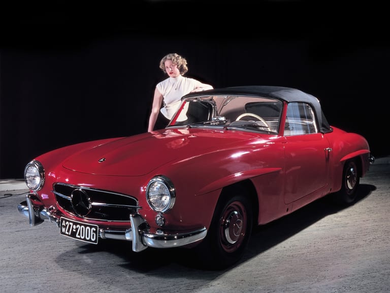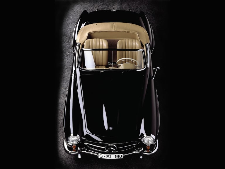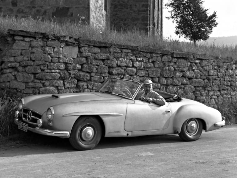 Confortable, filant à 170 km/h (l’objectif initial des 190 km/h ne sera jamais atteint), elle véhicule l’image des 30 glorieuses, ce qui explique son succès aujourd’hui. Surtout, à partir de 1957 apparaît la 300 SL Roadster au profil quasiment identique : la 190 bénéficie alors encore plus de l’image du porte étendard de la marque tandis qu’à la même époque, BMW a du mal à vendre son roadster 507 à l’image trop éloignée des autres productions (l’Isetta par exemple). Produite jusqu’en 1963, elle trouvera 25 881 clients (dont 10 368 aux USA et 5 245 en Allemagne) avant d’être remplacée par la série des SL W113 dites « Pagode ».