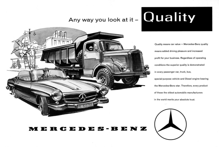 Si Mercedes est une marque bien allemande, comme chacun le sait, les 300 SL et 190 SL n’ont pas été conçues à l’origine pour le marché européen mais bel et bien pour le vaste marché américain pourvoyeur de devises si précieuses pour les entreprises allemandes et dont la croissance économique représentait un véritable Eldorado. Si une large partie de la population se satisfaisait de la production locale, il existait des amateurs de “sports car” à l’européenne prêt à se damner pour une petite anglaise. Alors pourquois pas une allemande ? C’est en tout cas le raisonnement que tient Max Hoffman, célèbre importateur d’origine autrichienne officiant à New York.