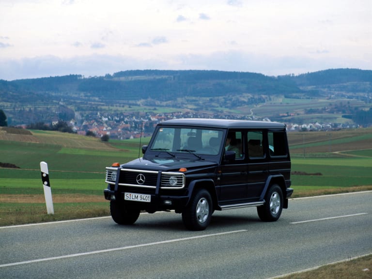 Cher, le 500 GE fera rêver les gamins, mais n’arrivera pas à atteindre l’objectif fixé : seuls 446 exemplaires sortiront des usines autrichiennes de Steyr-Puch, à Graz. Une rareté qui fait de lui désormais un collector, mais un semi-échec à l’époque. Enfin, pas tout à fait car ce premier essai permettra à Mercedes de peaufiner son projet : désormais, le G allait quitter le domaine de l’utilitaire pour devenir une référence du luxe. À partir de 1997, le G 500 fera son apparition dans la gamme comme un modèle standard, avec 292 chevaux, donnant le top départ de la surenchère : G55 AMG, G63 AMG V12 pour commencer avant d’arriver à nos années modernes où les puissances dépassent allègrement les 400 chevaux voire même les 600 pour les récents G55 AMG. Des voitures désormais plutôt destinées aux footballeurs qu’aux gentlemen farmers.