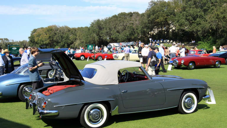 Produite jusqu’en 1963, la 190 SL ne quitta la scène (au même moment que le roadster 300 SL) que pour céder la place à la Pagode, qui assuma avec panache la succession pourtant délicate de ses deux aînées. En huit années de carrière, le modèle ne connut que fort peu de modifications et, contrairement aux multiples développements dont bénéficièrent ses descendantes, dut se contenter d’une seule motorisation, aux caractéristiques immuables jusqu’à l’arrêt de la fabrication. Une variante six-cylindres, équipée du moteur des 220, fut très sérieusement envisagée et son élaboration alla même fort loin mais, malheureusement, elle n’entra finalement pas en production ; les 25 881 acquéreurs du modèle semblèrent néanmoins heureux de leur choix, qui correspondait somme toute à cette forme d’hédonisme raisonné qui, par la suite, assura le succès des types W113 puis R107. Depuis qu’elle est entrée dans le monde de la collection, l’auto semble s’être émancipée de l’ombre tutélaire et encombrante de sa grande sœur ; elle suit le cours d’une existence distincte et a su faire de nombreux adeptes au fil des générations d’amateurs. Près de soixante ans après sa disparition du catalogue, la voici devenue l’une des grandes classiques de la firme à l’étoile et le temps où certains cuistres la toisaient avec condescendance est bel et bien révolu, comme en témoigne une cote devenue inaccessible à la plupart d’entre nous. N’en concevons nulle tristesse : c’est la garantie de la préservation d’une auto dont beaucoup ont mis du temps à comprendre à quel point elle pouvait s’avérer désirable !