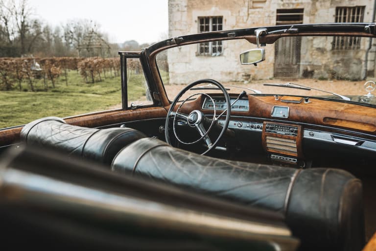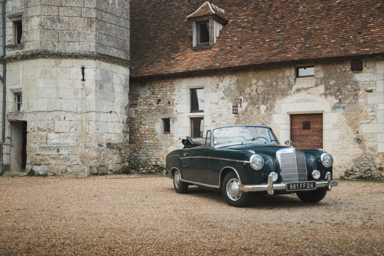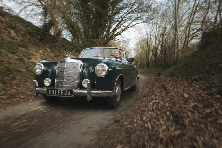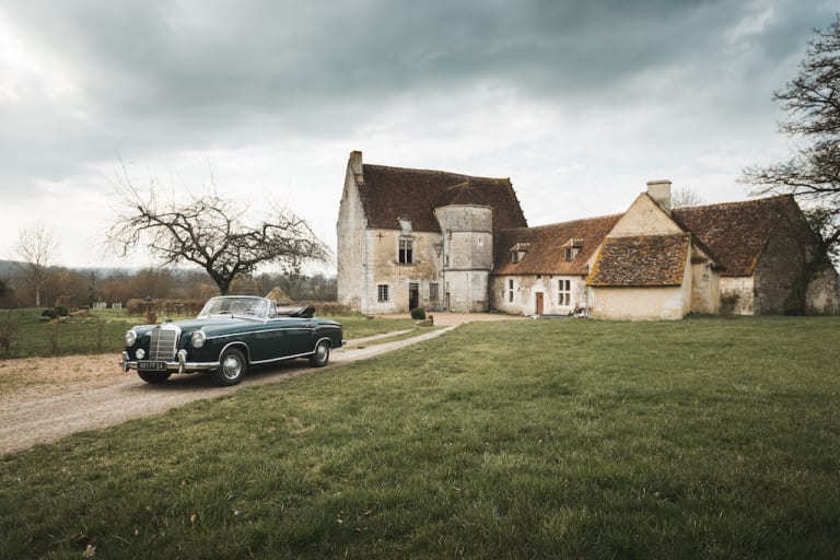 Pour sa première sortie, Serge est parti sur les routes enneigées du mois de janvier. « Elle a été formidable. Il y avait beaucoup de neige. J’ai dû rouler à bas régime et elle a été parfaite. C’est la bagnole “neige et glace”. » Cette 220 S a intégré la propriété de campagne de Serge, où elle se fond complètement dans le décor. Apparemment, vieilles pierres et Mercedes ancienne font bon ménage. « C’est comme si elle avait toujours été là. Elle correspond parfaitement avec ce lieu. » Comme quoi on ne peut pas manquer son rendez-vous avec le destin. Il faut avoir néanmoins un sens inné de la beauté pour l’apprécier.