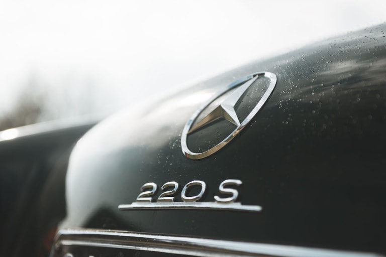 Comme son surnom l’indique, le modèle “Ponton” a été la première Mercedes à intégrer les ailes avant, les garde-boue et les portières dans les ailes. La gamme “Ponton”, introduite en 1953, fut la première voiture de la marque entièrement conçue après la guerre. Sa version 220 S a été présentée en avril 1956 avec le 6 cylindres en ligne alimenté par un double carburateur Solex, produisant 100 ch à 4 800 tr/min, pour atteindre une vitesse de pointe de 160 km/h. Les freins étaient dotés d’une servo-assistance qui procurait une efficacité de freinage largement supérieure à ce que l’on trouvait alors en compétition, et digne des autos qui ne suivraient le mouvement que dans les années 1970. « Elle roule très bien. Elle est ancienne, mais déjà d’une telle modernité ! »