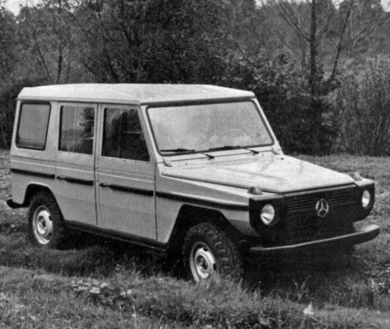C’est peu dire que la Daimler-Benz créa la surprise en dévoilant, au début de 1979, un véhicule très éloigné de sa production usuelle. En ce temps-là, le catalogue Mercedes était en effet nettement moins foisonnant qu’aujourd’hui et demeurait fidèle à de longues traditions en ne comportant en tout et pour tout que deux modèles de berlines, un break, deux coupés et un roadster. Bien sûr, la firme possédait également une très active division dédiée aux camions, camionnettes, autobus et autocars – sans parler du légendaire Unimog – mais ses dirigeants avaient toujours veillé, jusqu’alors, à observer une césure très stricte entre les deux univers. Même les très utilitaristes berlines Diesel qui avaient amplement contribué à bâtir la réputation du constructeur souabe offraient un confort et une qualité de construction en tous points dignes des modèles les plus luxueux de la marque. C’est pourquoi l’apparition du Geländewagen constitua un événement de première importance – même si la genèse de l’auto s’avéra plutôt chaotique, s’agissant au départ d’un véhicule tout-terrain conçu pour les autorités iraniennes et, potentiellement, l’armée ouest-allemande, laquelle lui préféra in fine le Volkswagen Iltis. En s’aventurant dans un segment de marché jusqu’alors peu fréquenté, mis à part Land Rover, Nissan ou Toyota, Mercedes et son partenaire autrichien Steyr-Daimler-Puch partaient à la conquête d’une clientèle qui, avant l’apparition de la série G, n’aurait jamais songé à acquérir une voiture à l’étoile.