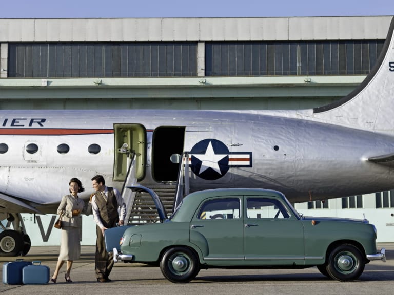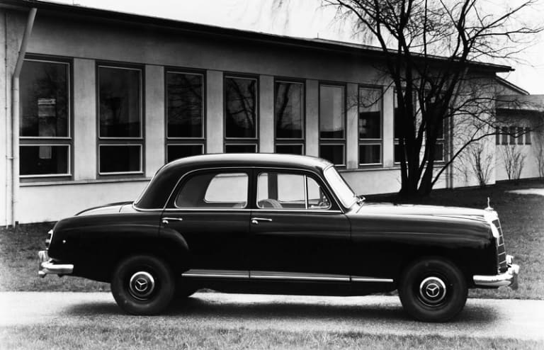 La seconde guerre mondiale aurait pu avoir comme conséquence la destruction totale de l’industrie automobile allemande. Les bombardements avaient gravement touché les usines, les actifs avaient largement servi au paiement de dommage de guerre et la séparation de l’Allemagne entre l’ouest et l’est avait contribué à la perte des usines du secteur soviétique, nationalisées. Il fallait donc un miracle pour que l’automobile teutonne en général et Mercedes-Benz en particulier puissent se redresser. Et pourtant, dès les années 50, la marque à l’étoile revenait sur le devant de la scène avec la 300 « Adenauer », la 300 SL mais surtout la fameuse “Ponton”, best-seller de la décennie.