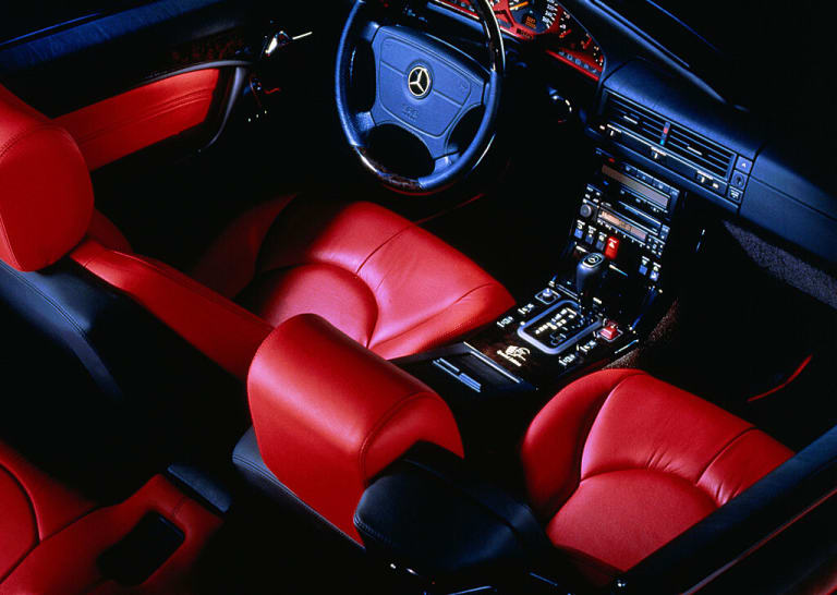 À la fin des années 1980, la série 107 faisait partie de ces chères vieilles choses semblant promises à une forme d’éternité car indéfectiblement attachées, millésime après millésime, aux catalogues de leurs constructeurs respectifs. Comme la SL, la Jaguar XJ-S, l’Aston Martin AM V8 ou la Fiat 126 ressemblaient ainsi à ce qu’elles étaient – d’attachants remugles échappés des seventies et refusant obstinément de mourir. Pourtant, en dépit d’un succès ne se démentant pas, il était grand temps, pour le seul cabriolet Mercedes de son temps, de passer le relais, sa sénescence apparaissant chaque jour plus flagrante en comparaison des très modernes 190 ou de la gamme 124. C’est à dessein que nous citons cette dernière, car la R129 lui doit beaucoup – schématiquement, l’auto a été élaborée sur la plateforme raccourcie de la gamme moyenne Mercedes, agrémentée toutefois d’un certain nombre d’innovations qui, par comparaison, allaient envoyer le modèle sortant directement au musée. Si, fort logiquement, la R107 exsudait tous les codes stylistiques en vigueur à Stuttgart au début des années 70, son successeur, quant à lui, se projetait résolument vers la décennie 90, en actualisant habilement les substrats du « design Sacco », transposés pour la première fois dans une carrosserie ouverte. Incontestable réussite esthétique, la nouvelle SL a été unanimement saluée par la presse spécialisée pour l’équilibre de ses lignes et son élégance dépourvue de toute ostentation. Ici, nul besoin de spoilers ou d’ailerons tapageurs pour exprimer la puissance ; cohérente et harmonieuse quel que soit l’angle sous lequel on la contemple, peut-être plus que tout autre modèle de la marque à ce moment-là, la R129 personnifie à merveille la philosophie Mercedes.