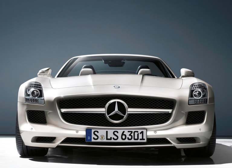 Il ne s’agit cependant que d’un modèle de transition, qui ne figurera que cinq petites années au catalogue Mercedes, toujours exclusivement dotée du 6,2 litres sommital mentionné plus haut, si l’on excepte la très anecdotique version électrique dont les neuf exemplaires péniblement écoulés n’ont pas bouleversé les foules. Ainsi, ce faux pas mis à part il n’existe pas de SLS véritablement plus recommandable qu’une autre, même si, à titre personnel, nous avouons une certaine inclination en faveur du roadster, dont la capote est plus élégante que le complexe toit escamotable des SL contemporaines. Nettement plus utilisable qu’une SLR, l’auto accepte sans difficultés un usage quotidien – même si l’on peut aisément imaginer qu’un nombre restreint de propriétaires s’en servent pour aller chercher le pain. De ce point de vue, l’inspiration 911 est manifeste : il est question de s’adresser à des conducteurs désireux de pouvoir rouler aussi souvent que possible, dans des circonstances diverses, mais avec une sportivité que la SL, opulente et alourdie, n’est alors plus en mesure de proposer. Il n’empêche que le plan-produit quelque peu erratique de Mercedes peut interpeller : à l’issue de sa brève carrière, la SLS AMG, tout comme la SLR avant elle, n’a pas été remplacée à proprement parler, l’AMG GT se « normalisant » encore un peu plus. Cela lui confère une place singulière dans l’histoire des SL et apparentés, et la rend d’autant plus attachante !
