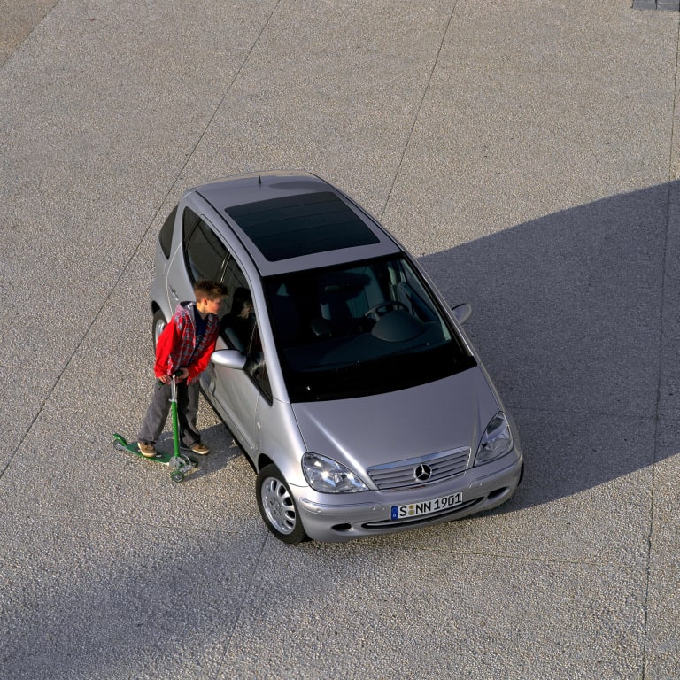 On a tendance à l’oublier, maintenant que les marques premiums allemandes couvrent tous les segments du marché, mais à la fin des années 90, la descente en gamme ne s’est pas faite avec une si grande facilité. Aujourd’hui, une Audi A1 nous semble naturelle et légitime alors que l’Audi A2 fut un des plus beaux ratés de l’automobile (lire aussi : Audi A2). BMW tenta une méthode plus basique dès 1994 avec sa Série 3 E36/5 Compact, qui sans démériter n’était qu’un brouillon de ce que deviendra la Série 1 (lire aussi : BMW Série 3 Compact). Quand à Mercedes, son arrivée sur le marché des « petites voitures » faillit tourner au cauchemar à cause d’un style particulier, de la traction avant, et d’un animal boisé appelé élan.