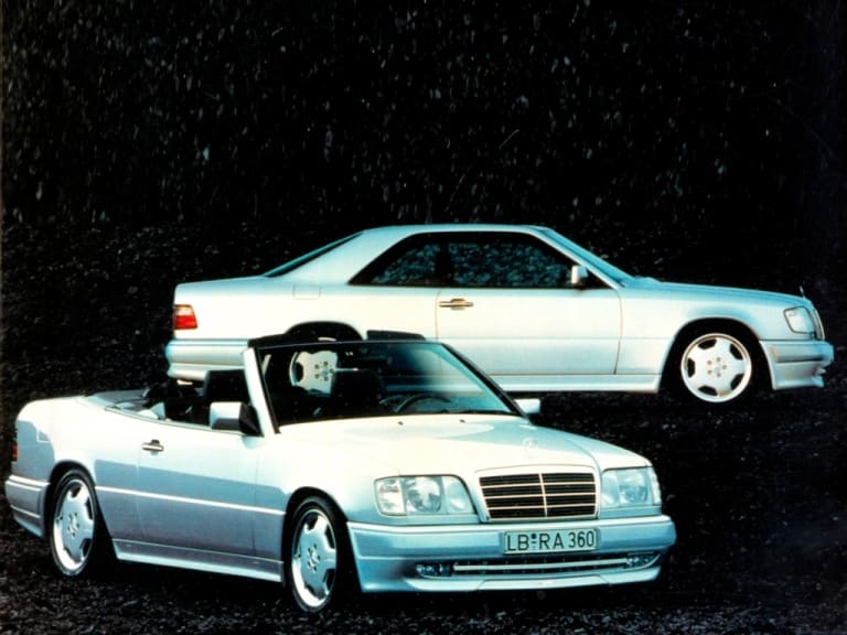 Fort de son expérience avec la C36 (et du développement du moteur 3.2 Mercedes réalésé à 3.6 litres), AMG décide donc d’élargir sa palette et d’offrir un compromis entre le look dévastateur de la E60 AMG et le moteur puissant mais sage de la C36. Cette fois-ci, il ne s’agit pas d’un accord commercial aussi large que celui signé avec la C36 justement. En réalité, il s’agit juste d’un kit proposé à tout client de Mercedes E320 W124 désireux d’offrir un peu de punch et un look plus sportif à sa paisible berline, son placide break, son classique coupé ou son cabriolet familial (4 places).